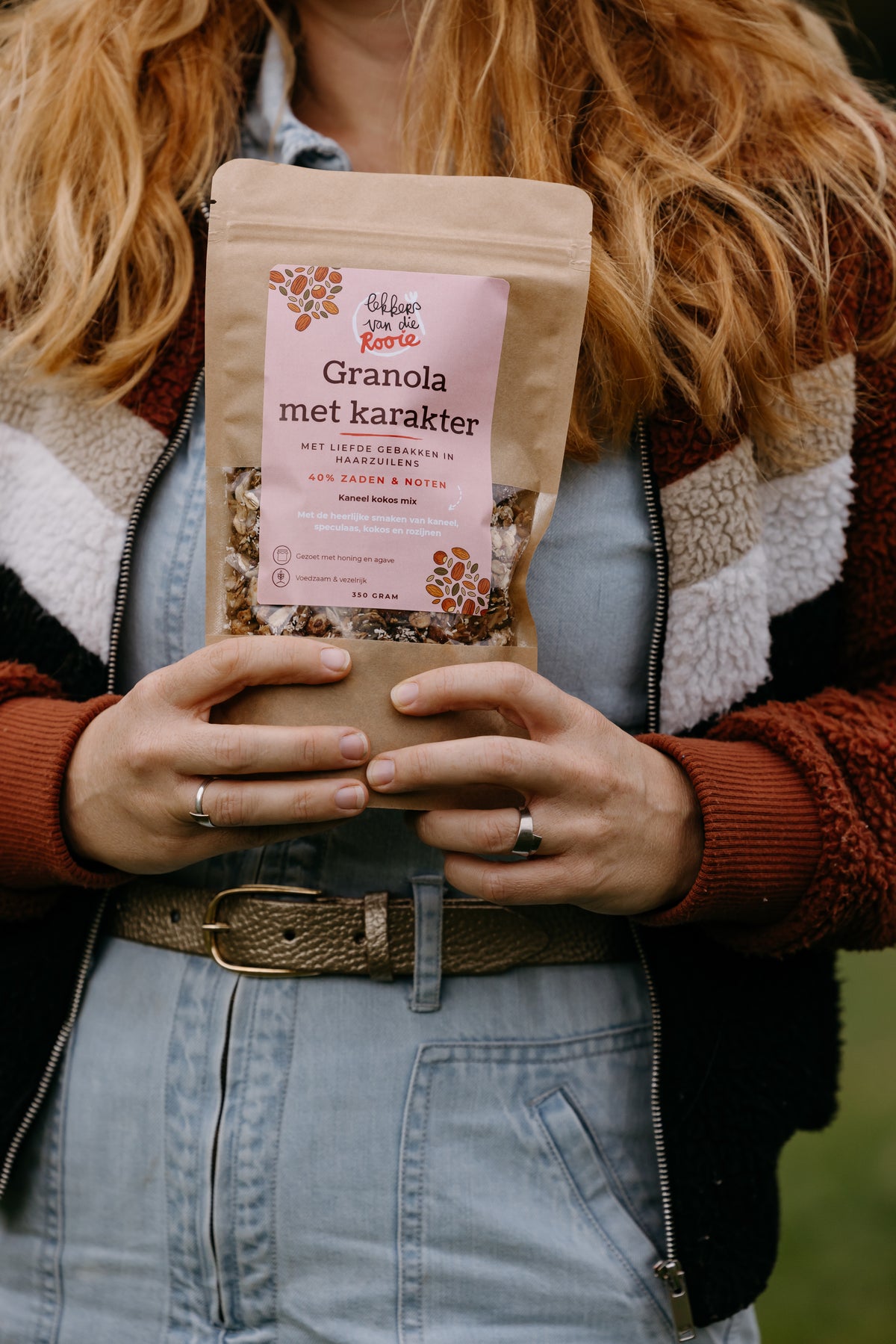 Die liefde voor puur en eerlijk eten zit diep. En die proef je terug in elke zak granola die ik bak in mijn keuken in Haarzuilens: grove ingrediënten die je kunt zien en proeven, klein gebakken, met de hand en vers.